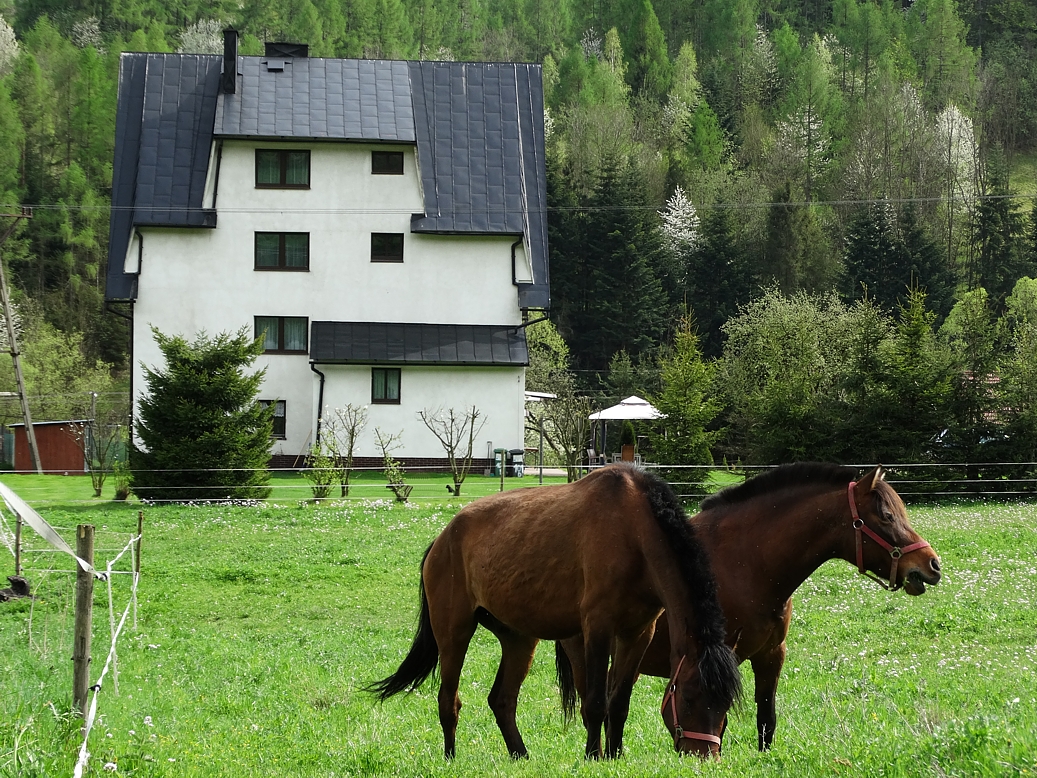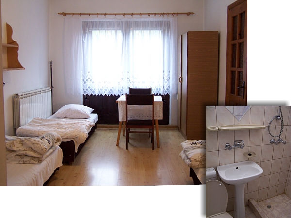 pokoje z łazienkami, wyżywienie, jadalnia, TV, szałas, parking