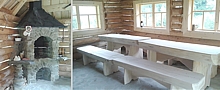 Na terenie posesji znajduje się wybieg dla baranków i danieli. Tuż obok stylowa bacówka z kominkiem i stołami - idealne miejsce na tradycyjną biesiadę.